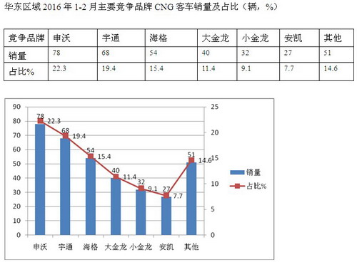 2016年1-2月华东区域各市场CNG客车销量统计表