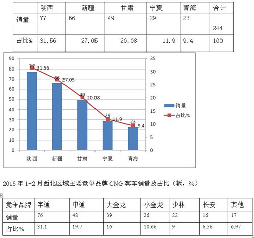 2016年1-2月西北区域各市场CNG客车销量统计表