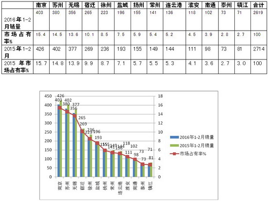 江苏区域2016年1-2月大中型客车市场特点剖析