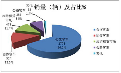 从上图表可知,在2016年一季度销售的4189辆纯电动客车市场中,按目标用途划分,公交客车仍然是纯电动客车最大的细分市场,其次是团体客车市场,再次是旅游租赁(主要是6米、7米),第四是公路客车市场。