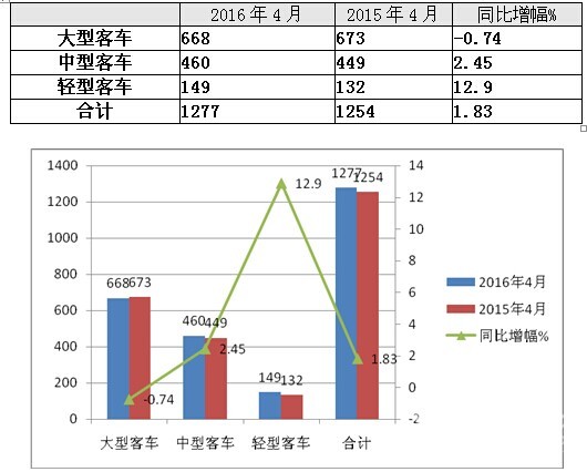 从上图表看出,2016年4月同比大型CNG客车销量最大,但同比处于微降;其次是中型客车,但增幅较小;销量最小的是轻型型客车,但增幅最大。也就是说轻型CNG客车的增长是推动2016年4月CNG客车增长的重要动力。