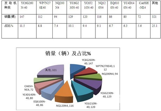 1、YC6G260N-40对应的销量比例最高,这主要是对应12米左右车型的CNG公交配置;