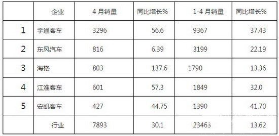 2016年4月客车销售数据简析