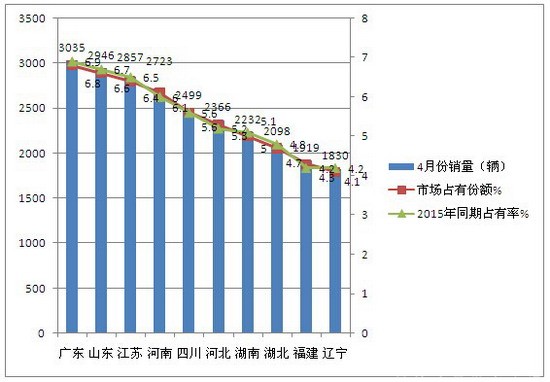 (三)2016年4月轻型客车销量情况: