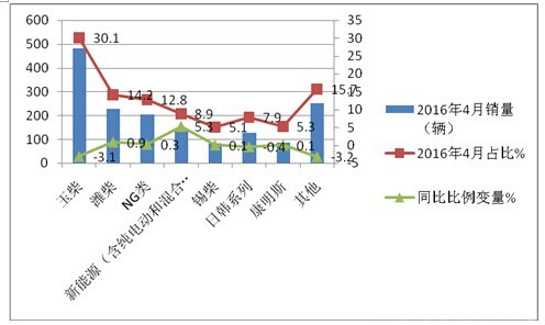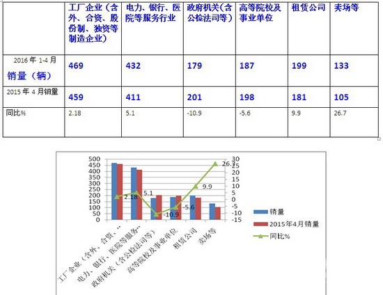 4月团体客车市场销量的六分之一到七分之一,但与2015年4月比,权重提高了0.9个百分点。