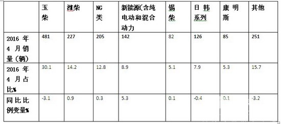 1、玉柴发动机是2016年4月团体客车销量中权重最大的细分市场,几乎占据了7月团体客车市场销量的三分之一,但与2015年4月比,权重下降了3.1个百分点。