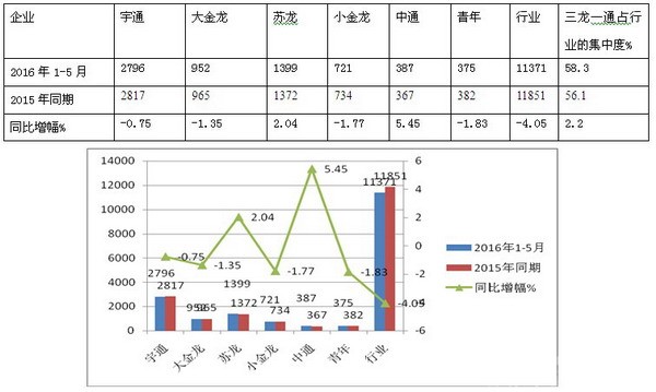 2、2016年1-5月很多区域的长途客运经营模式发生了变化,主要是以前靠自己“跑单帮”的个体户被吸纳到长途客运公司的麾下,实行集约经营和统一管理,原来那种“零星购买”公路客车的购买行为转变成“大批量统一采购和集中购买”的行为。这种购买行为的转变在资金充足情况下可以带来购买数量的大幅上升,因为集约经营和统一管理降低了长途公路客车的经营风险,但是,集中购买必然对资金提出了更高的要求,而在国家货币适当宽松的2015年,这种购买经营方式必然存在资金风险,因此,有很多购买计划因为资金不足而不得不取消或延迟。