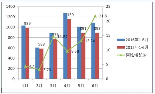 根据上牌数据统计,2016年1-6月各月LNG客车销量及2015年同比情况表