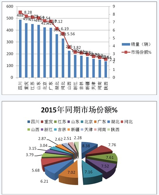 2、前15名主流市场中,广东的市场份额增加最大,下降幅度较大的是四川区域。