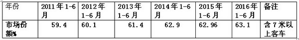 4、为了应对铁老大,旅游和客运市场相互渗透,相互促进,也是促成2016年1-6月旅游客车市场增长的一个因素。