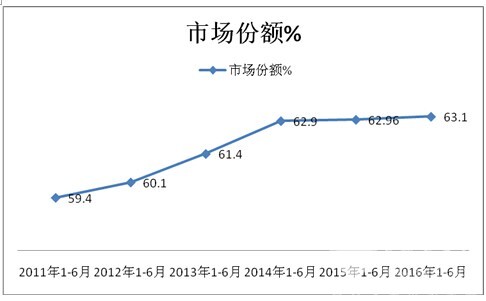 三龙两通及青年、丰田考斯特等7家主流企业的旅游客车的市场占有率从2011年1-6月的59.4%逐年升高到2016年的63.1%,说明在客车行业旅游客车市场的客户一方面越来越注重品牌,另外一方面,旅游客车市场的垄断程度越来越高,而且有加大的发展态势,留给其他客车企业的旅游市场机会越来越少。出现上述现象的主要原因分析: