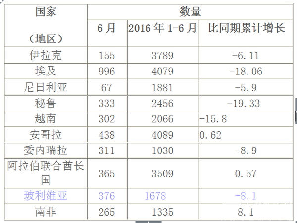 上图表表明,2016年1-6月,从瑞典进口客车数量最多,增幅也最大。