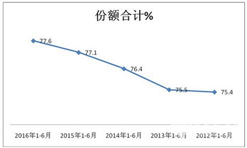 2016年1-6月三龙二通、安凯等主流公路客车企业的10-12米公路客车总量占据东北区域市场的集中度为77.6%,比2015年同期的77.1%提高了近0.5个百分点,比2012年同期的75.4%提高了2.2个百分点。一方面说明三龙二通等主流公路客车企业是东北区域10-12米大型公路客车的绝对垄断者,同时其垄断地位还在加强,这也从一定程度上说明了三龙二通等强大的原因。