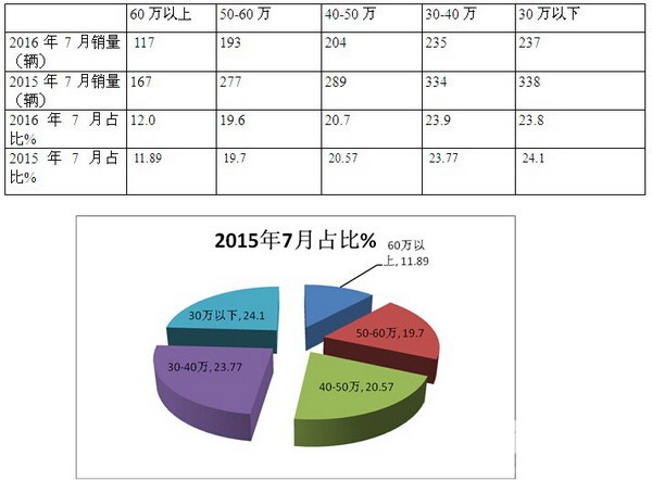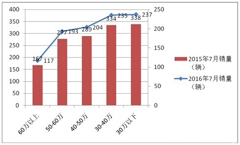 四、按价格区段划分,对2016年7月的CNG按客车销量分析