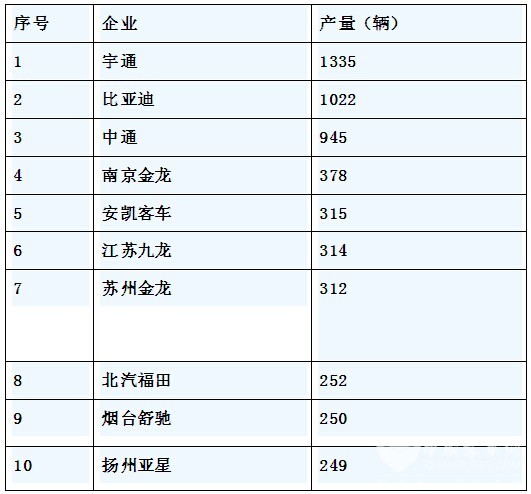2、2016年8月纯电动客车产量前10名企业统计表