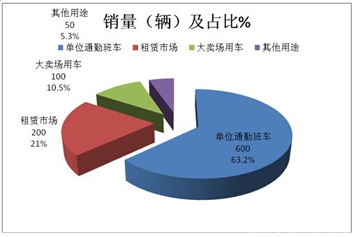1.按用市场用途划分,主要用于租赁、单位通勤班车、卖场接送顾客用车等。大致比例如下: