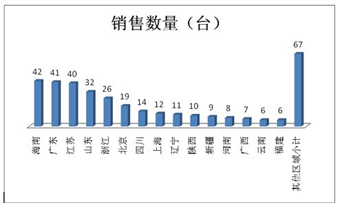 从上图表看出:丰田考斯特2016年8月的重点销售区域是海南、广东、江苏、山东、浙江、北京、四川、上海、辽宁、陕西、新疆等区域市场。同时也说明了上述区域市场是高端考斯特客车需求的重点区域市场,这给国内生产制造考斯特的客车企业在市场营销策略制定和重点资源投放上提供了一定的启示。