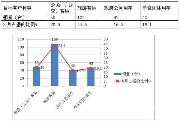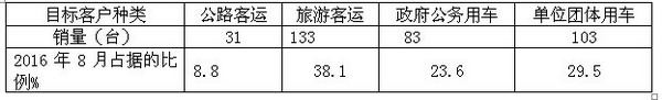 2、按目标客户群体划分分析2016年8月小金龙考斯特销量结构