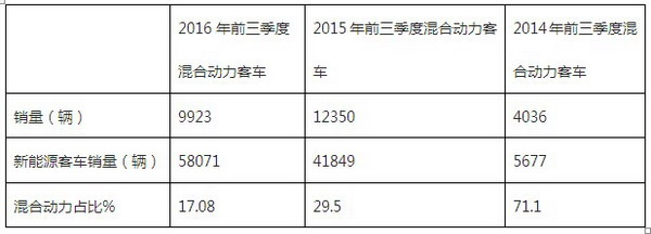 近三年前三季度混合动力客车在新能源客车总量中占比统计,表2