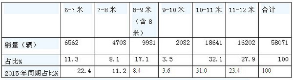 根据查阅最新上牌信息统计,2016年1-9月6米以上各长度段纯电动客车销量结构表,表4
