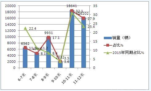上图表表明,2016年前三季度新能源客车销量结构发生了转移,6-7米轻型客车和7-8米(不含)权重减小,8米以上大中型客车权重加大,11-12米大型客车权重增加最大,尤其是8米占比增加最大,这也解释了为什么2016年前三季度整体客车市场下降(2016年1-9月,国内客车市场销量整体下降1.1%,除了8米车表现抢眼、增长105%以外,其他多数细分车型市场均不理想,这主要源于新能源车销售结构的变化----市场需求从6米纯电动车向8米纯电动车转变)。
