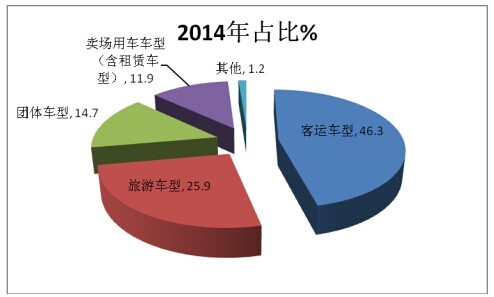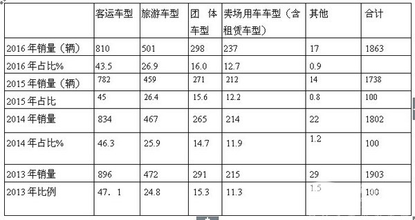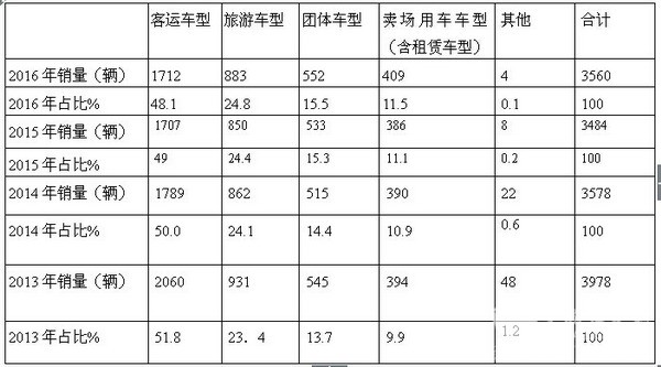 1、华东市场客运车型在近4年一直是9-10米座位车中最大的市场份额,均接近43.5%的市场份额,其次是旅游客车,再次是团体客车,第四是卖场用车(含租赁用车车型)。