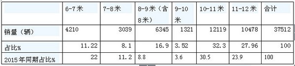 根据上牌信息,2016年前三季度纯电动公交客车在各个长度区间销量统计: