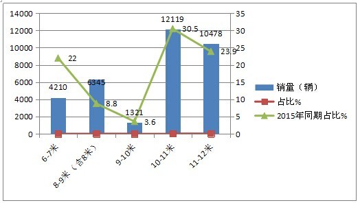 上述数据分析表明,2016年前三季度,纯电动客车在10-11米销量权重最大,6-7米权重同比减少最多,8-9米权重增加最多。