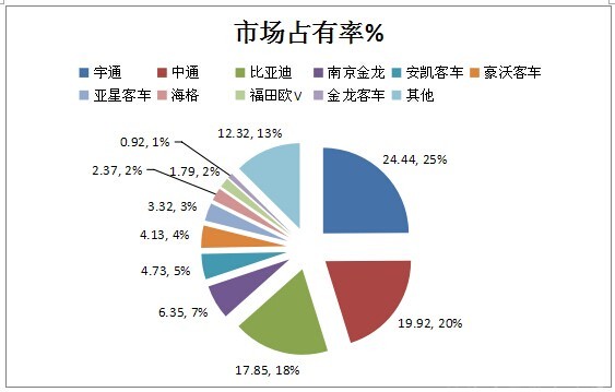 根据最新上牌数据,2016年前三季度主流客车企业纯电动客车市场份额统计