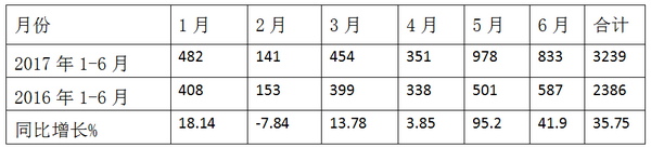 根据上牌数据统计,2017年1-6月各月LNG客车销量及2016年同比情况表