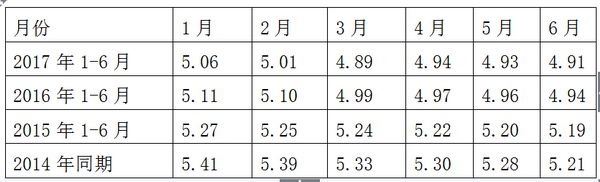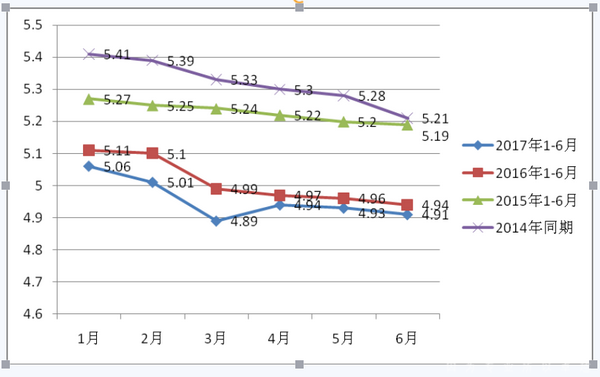 1、2017年上半年的1-6月,LNG公交客车与公路客车的销量比指每月均大于4.9,且2017年每月的比值均小于2016年对应的月份(2017年1-6月的曲线均在2016年之下),说明LNG公交客车大于LNG公路客车,且LNG在公交领域2017年上半年各月的销量的绝对占据优势要小于2016年相对应的各月,而2016年又小于2015年,2015年小于2014年。