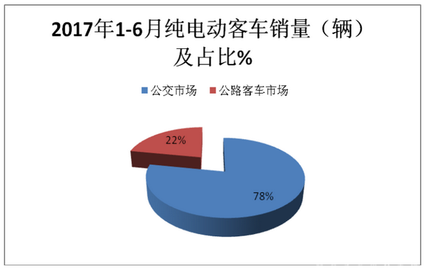 上图表显示,2017年上半年纯电动客车销量中,按目标用途划分,公交客车占据78%的市场份额,公路客车只有22%的比例,说明公交市场仍然是纯电动客车的最大市场。主要原因分析: