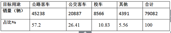 分析: 1、从上图表可以看出:公路客车在20万以下需求量第三小,,对应的大致是6米以下的农村公路或城郊公路客车(还包括5米以下轻客),占有的比例为14.3%。