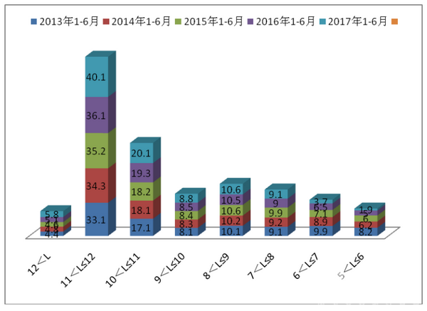 2、2017年1-6月新能源公路客车占据大中型公路客车的比例只有6.01%,同比减少了3.82个百分点。