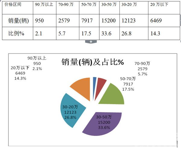 从上面分析可知,2017年1-6月共销售大中型公路客车45238辆,按价格划分大致情况是: