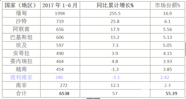 根据中汽协数据统计,2017年6月及上半年客车出口情况: