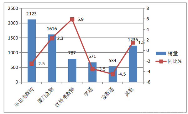 根据权威数据统计,2017年1-6月考斯特客车累计销售6967辆,同比增长1.44%,