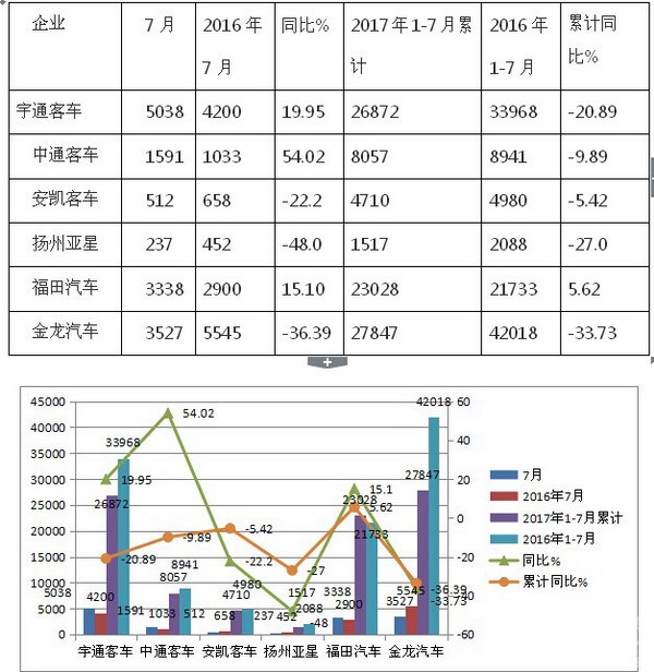 二、对各上市客车公司2017年7月及1-7月销量解析