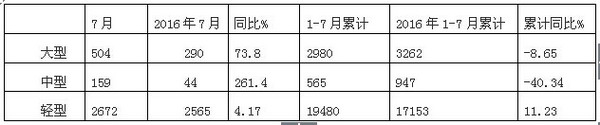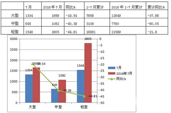 2、从7月份看,轻型客车降幅达到44.81%,降幅最大。从1-7月看,中型客车降幅超过60%。降幅之大,实属罕见。