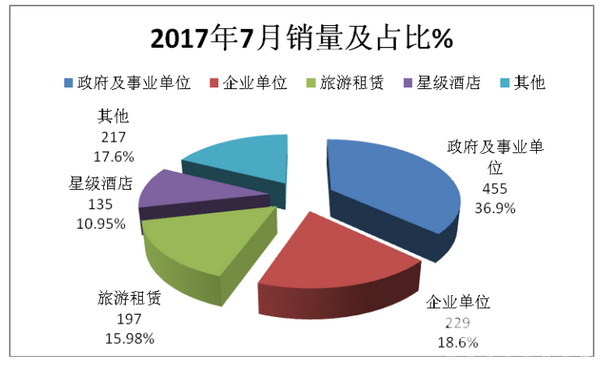 按照目标市场用途划分,2017年7月各细分市场的销量及占比: