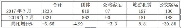 2017年7月份国内考斯特市场累计销售1233辆,与2016年同期相比有所下降。作为政府、企事业单位、公检法司、星级酒店接待等团体市场累计销售819辆,占据考斯特市场66.4%的市场份额,处于垄断地位,但由于政府部门费用控制比较严格,公务用车得到限制,同比还是出现了下降。公路、旅游市场占据考斯特市场的23%左右,而公交客运降幅最大,但基数较低,仅占市场份额的10.5%左右(详见上表,数据来源:车管所上牌数)。新一届国家领导人上台后,大力推进并贯彻落实《八项规定》,在公费旅游、接待用车等方面严格管控,在一定程度上影响了考斯特市场用车需求,而考斯特车型在旅游租赁市场出现近8.8%的上升。