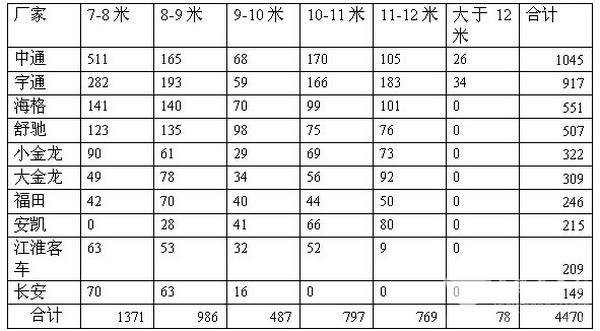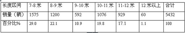 2、在10米以下的车型中,7-8米销量集中度最高,说明在中型客车市场中,7-8米进入山东市场的难度相对最大,大型客车中11-12米深处垄断程度最高,进入的难度较大、