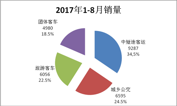 2017年1-8月及近2年来1-8月30万以下客车按目标市场划分销售数据比较分析.