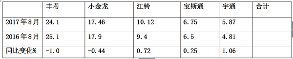 (三)、小金龙2017年8月份考斯特销量分析: