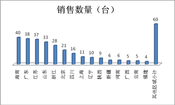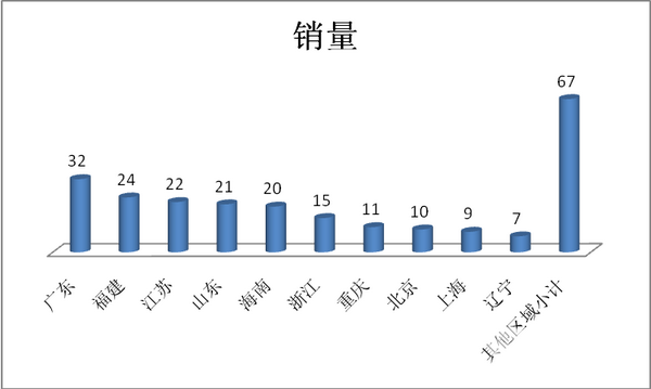 从上图表看出:丰田考斯特2017年8月的重点销售区域是海南、广东、江苏、山东、浙江、北京、四川、上海、辽宁、陕西、新疆等区域市场。同时也说明了上述区域市场是高端考斯特客车需求的重点区域市场,这给国内生产制造考斯特的客车企业在市场营销策略制定和重点资源投放上提供了一定的启示。