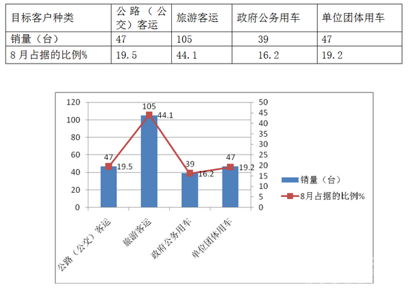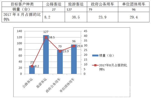 3、按目标客户群体分类对2017年8月丰田柯斯达的主要销量结构分析