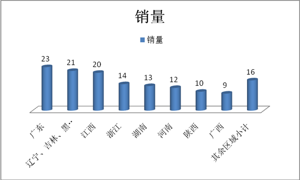 1、小金龙考斯特2017年8月份销量流向分布区域如下: