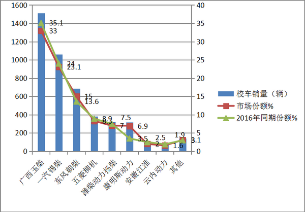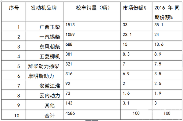 ---2017年8月销售的校车中,按发动机配置的品牌划分,配置校车的动力以玉柴最多,其次是锡柴、再次是东风朝柴,同比康明斯动力提高幅度最大,玉柴下降幅度最多