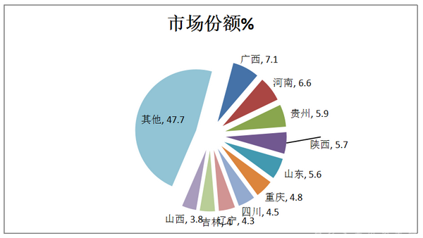 四、区域市场流向不平衡,重点区域市场集中度同比下降1.0个百分点,重点市场垄断程度有所减弱