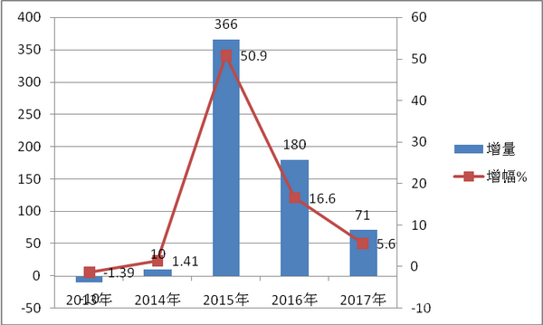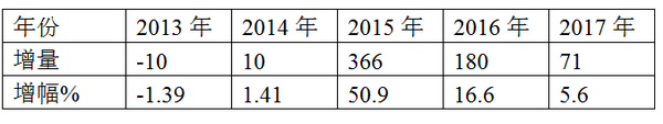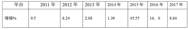 2011-2017年近7年前三季度高档客车市场增幅%,表2